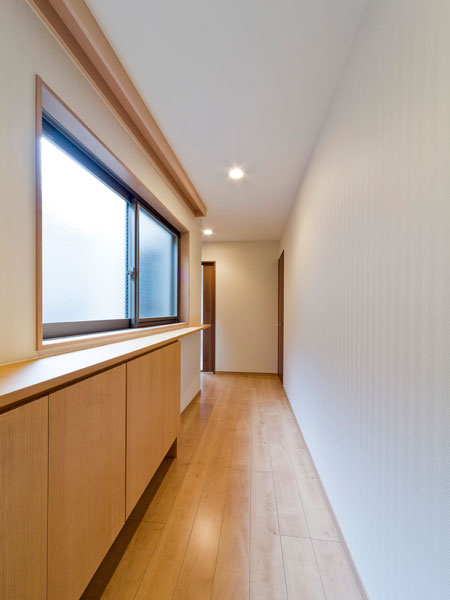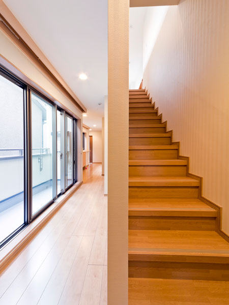 道路側と奥に居室、中央に階段、水廻りを配置したセンターコアとすることで、