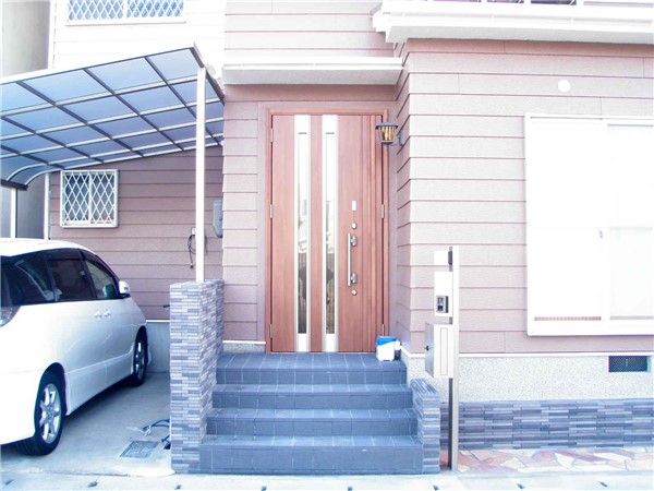 経年によりいたみの激しかった塀を取り壊し、明るく使いやすいアプローチとなるよう改修した。